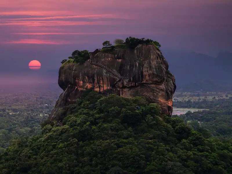 Sigiriya est l’un des sites les plus spectaculaires d’Asie. Cette forteresse bâtie au sommet d’un immense rocher volcanique domine la jungle sri-lankaise.
